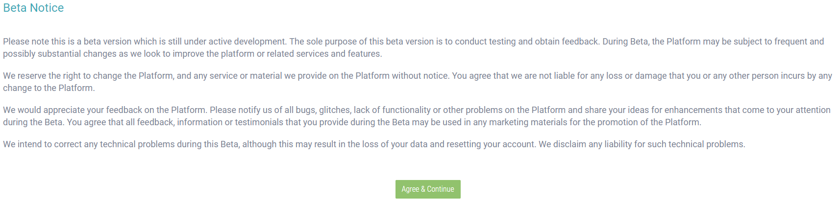 You will also need to acknowledge that LogTag® Online is still in a public beta test by clicking Agree & Continue.