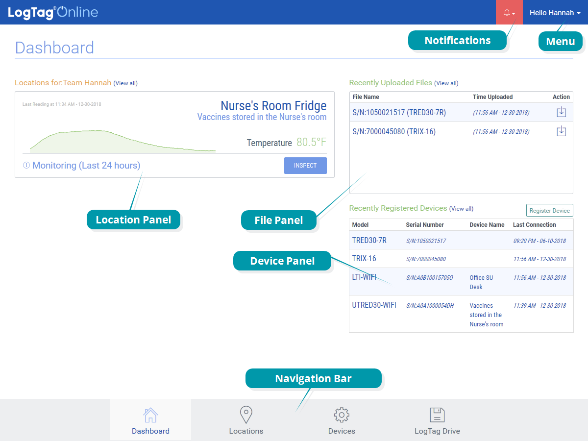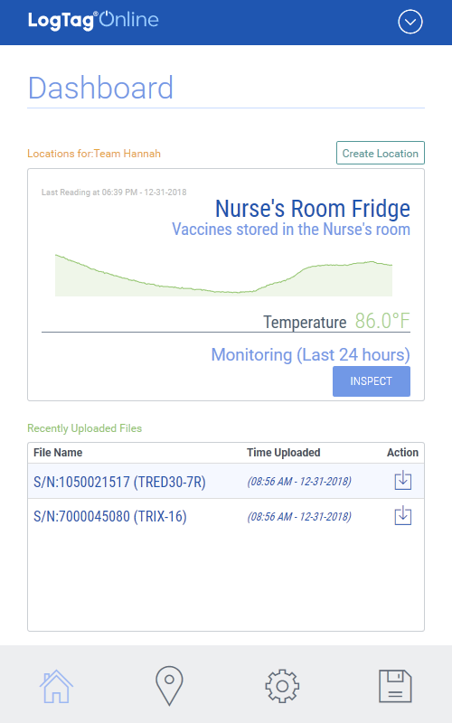Click any of these four icons for instant access to the main pages of LogTag® Online.