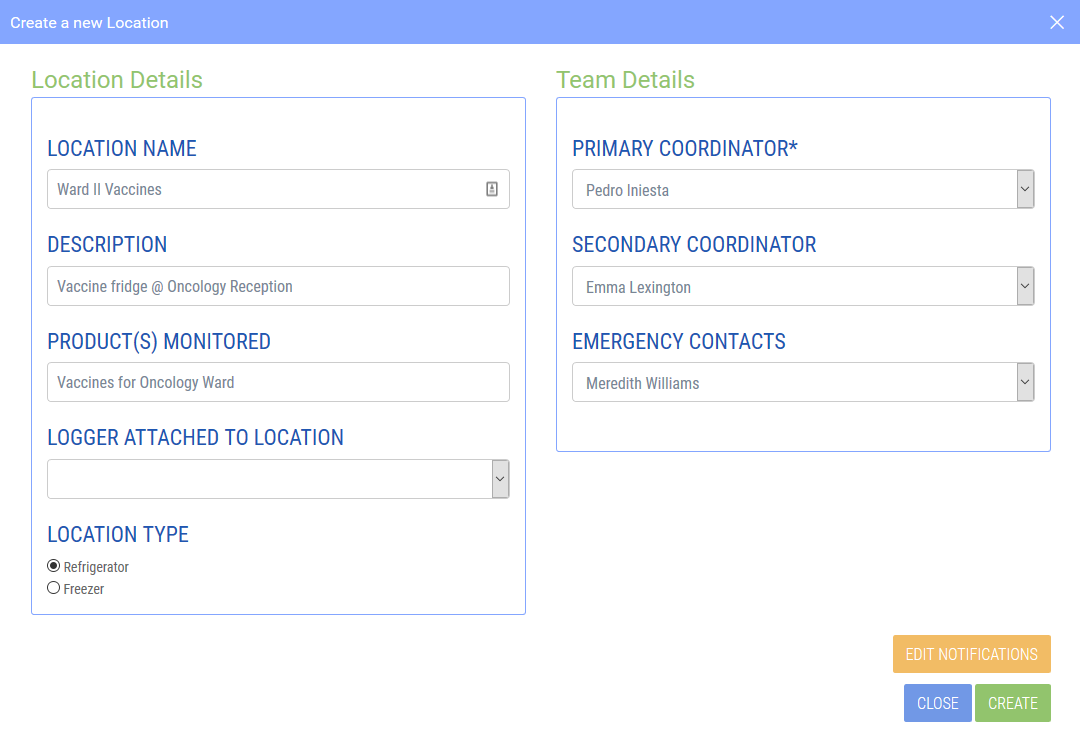 Select here if the location is a fridge or a freezer. This will make sure the correct report is generated.