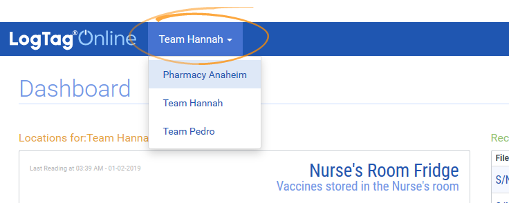 LogTag® Online allows you to join multiple teams using the same sign in details. Once you are a member of more than one team, you will see a Team name in the window's title bar (you will not see this name if you are a member of only one team). This is the name of the team you are currently accessing.